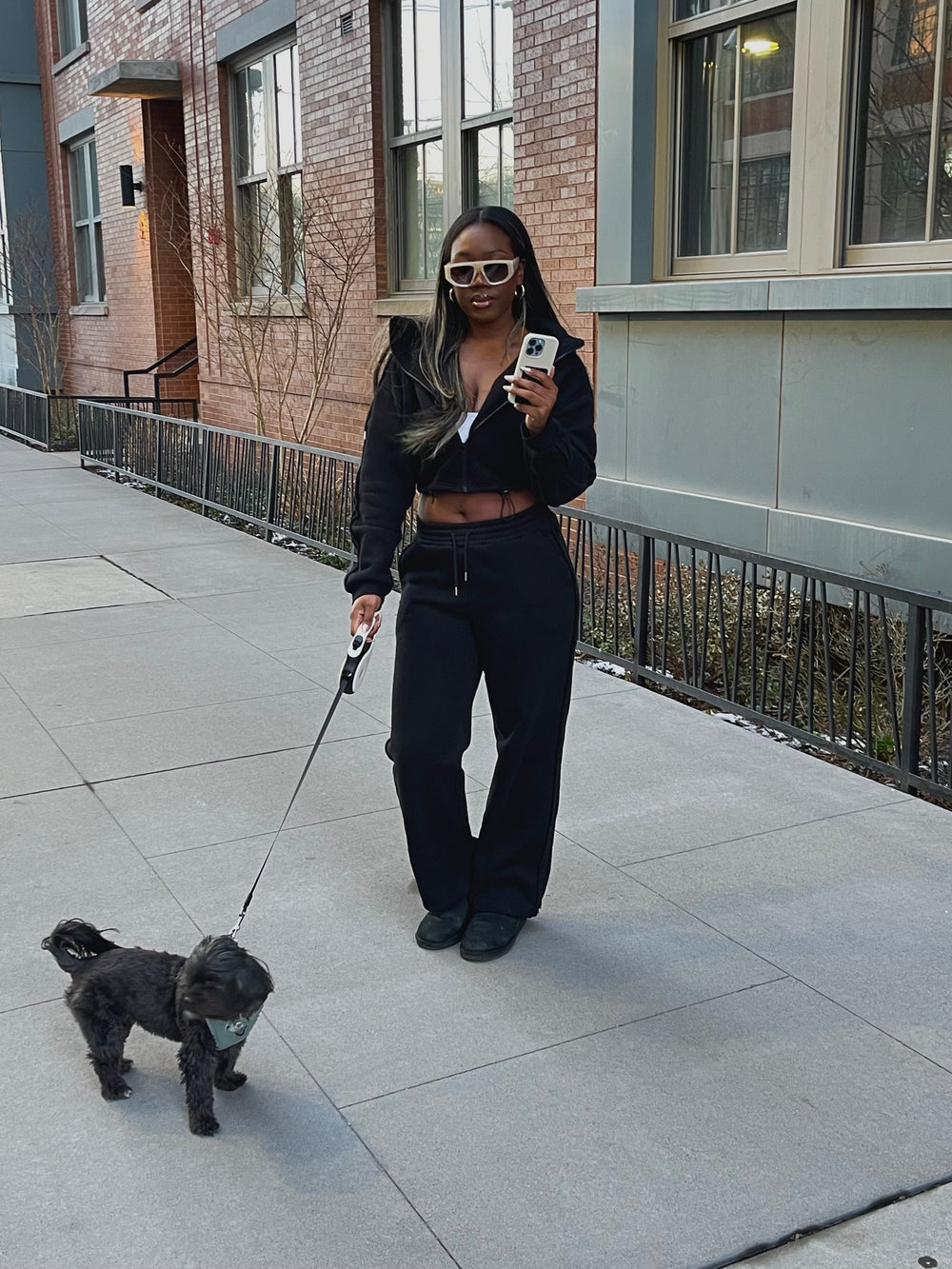 Our "don't sweat it" set is the ultimate blend of comfort and cool. The cropped zip hoodie features adjustable straps, letting you find the perfect fit for maximum coziness. Feeling breezy? Tighten them up for a snug hug. Need to layer up? Loosen them for effortless style. Plus, the Skin&Bawdy logo sits proudly on the hood, reminding everyone who owns your downtime.